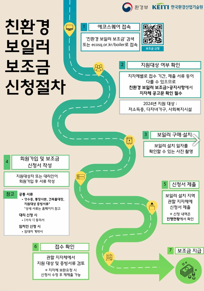 노후 보일러는 친환경 보일러로 교체하면 지원금을 주는 제도가 2월 1일부터 시작되었습니다. 2024년 친환경보일러 정부지원금이 최대 60만 원이니 지원대상을 알아보시고, 혜택 놓치지 마세요!!! 온라인 신청은 아래 링크 에코스퀘어를 통해 접수가능하며, 지원대상 및 지원금액이 변경되었으니 꼭 확인하시기 바랍니다.