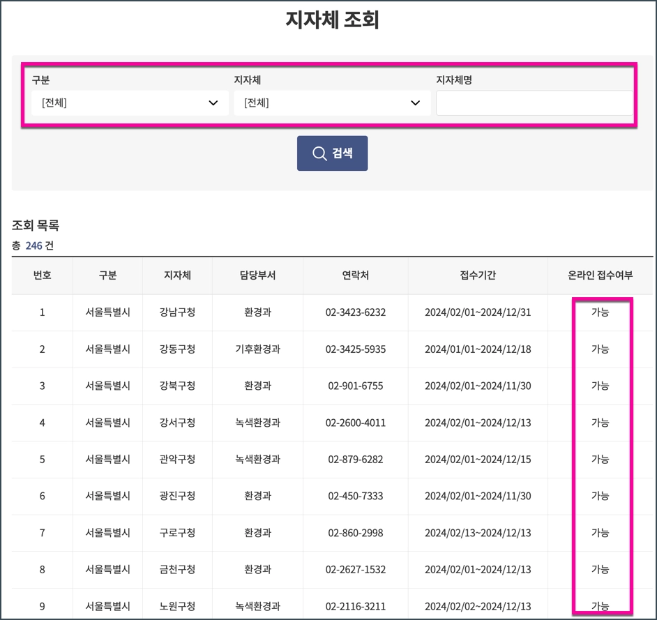친환경 보일러 교체 지원금 사업 기간은 자신이 살고 있는 관할 시군구청의 보조금 소진시에는 조기 종료될 수 있습니다. 따라서 지자체별로 친환경 보일러 지원금 담당부서에 확인해야 하는데요. 아래 링크를 클릭하면 담당부서, 전화번호, 접수기간 등을 에코스퀘어 홈페이지에서 확인하실 수 있습니다.